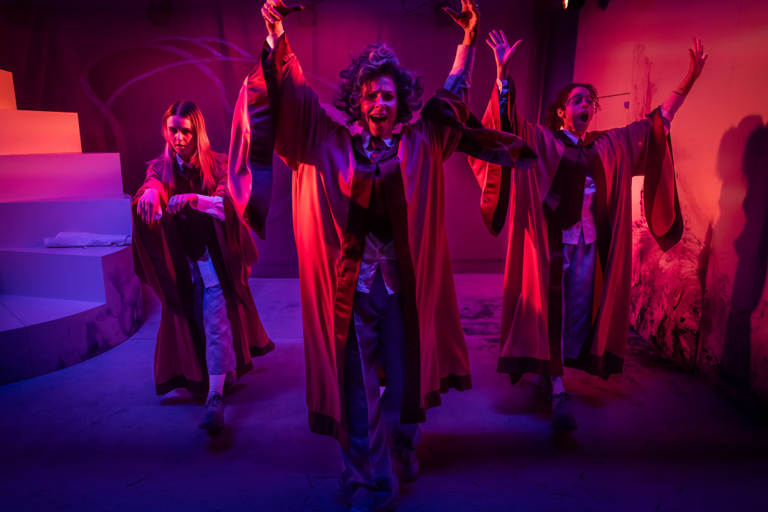 "Här är Hilma af Klint (Fabiola Cruz) och vännen Anna Cassel (Liv Hargne Granath) fnissiga flickor, gestaltade med livlig energi [...] Läraren, Rebecca Hayman med pondus i expansiv peruk och säkert utspel, lär dem att sitta och att andas."