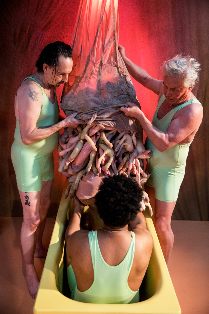 I högt tempo utmanas tonårspubliken med existentiella frågor som gäller åldrande, vänskap, känslor, utseende, första kärleken, droger, döden, evigheten. Badkaret får till och med tillfälligt tjäna som begravningskista. Här finns ingen osynlig vägg mellan scen och publik, heller inget direkt gestaltande av bestämda roller, snarare en form av expressionistisk magifylld dialog med publiken som i bästa fall får med sig ett och annat att tänka vidare på"