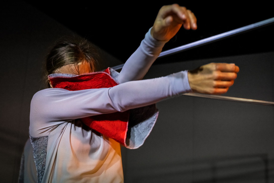 "Särskilt fascinerade det formbara textilmaterial som utgör ett väsentligt rekvisita. Med denna textil samt en fiffigt konstruerad, lätthanterlig metallställning skapar tre dansare en spännande, lekfull och fantasirik föreställning."
